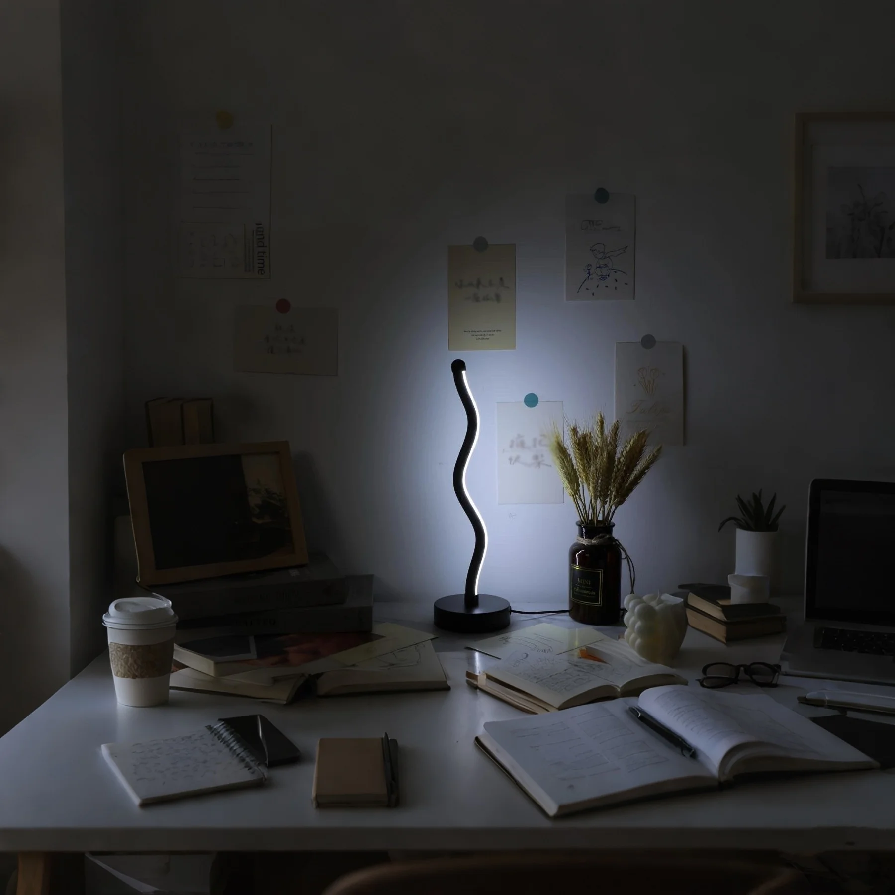 유려하고 미니멀한 실루엣: 부피가 큰 책상 램프는 이제 그만. 아우라 웨이브는 매끄럽고 유려한 S자 곡선 디자인으로 책상 공간을 최대한 활용하면서도 시선을 사로잡는 포인트가 되어줍니다.